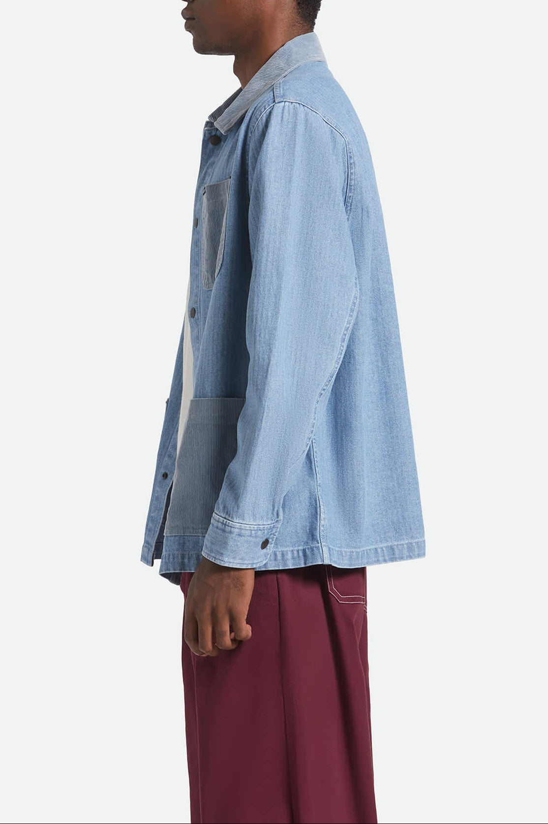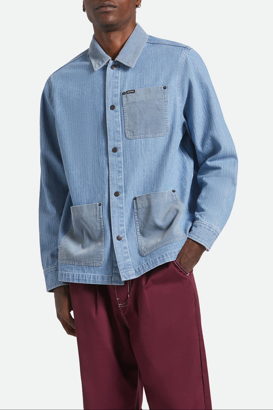 Bring heritage-inspired style to everyday wear with the Herringbone Lightweight Chore Coat. This relaxed-fit men’s coat is a modern nod to classic 1920s workwear, crafted from breathable 100% cotton in a herringbone weave for a refined yet rugged finish. Corduroy patch pockets and a matching collar add texture and vintage flair, while utility pockets with a woven label ensure functional storage.