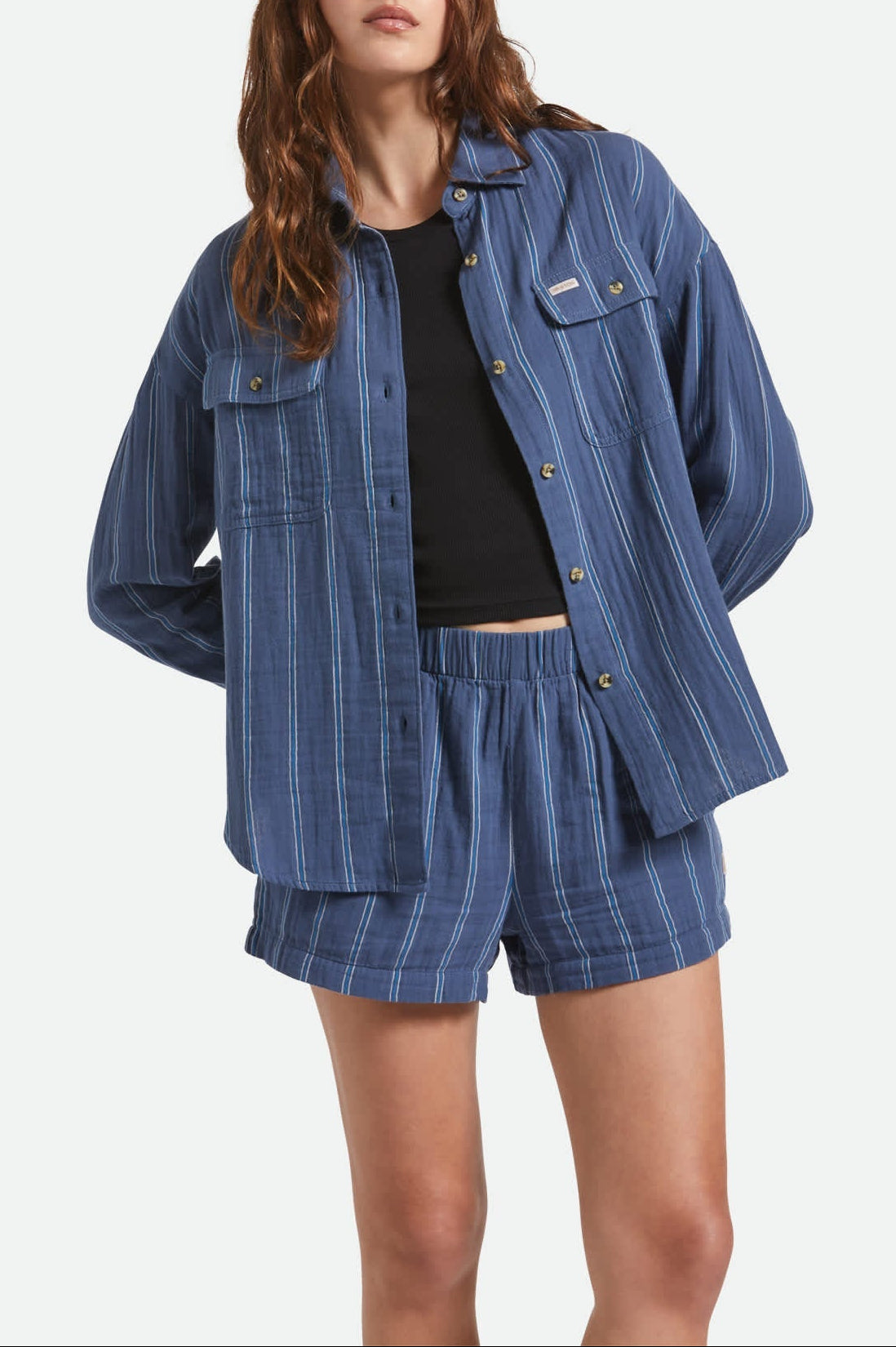 Perfect your layering game with the Wandering Long Sleeve Overshirt. This women's overshirt delivers a relaxed, classic boyfriend fit that pairs effortlessly with everything from jeans to dresses. Made from breathable 100% cotton, it offers comfort you can count on, whether you're out exploring or simply relaxing.