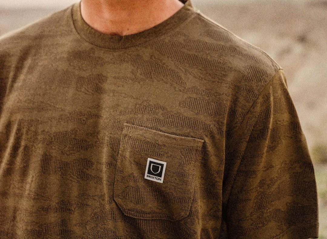 UPF-rated pocket tee with camo mesh jacquard and reflective details.